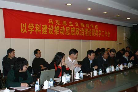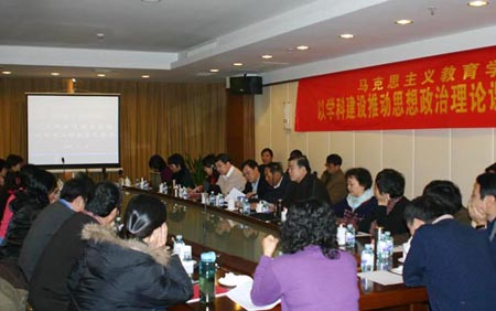 会议首先由副经理纪亚光、寇清杰分别就2009年科研、教学工作做了总结,并对2009年科研、教学工作突出的教师给予了表彰和奖励。随后,全国优秀教师寇清杰介绍了自己多年来任教的先进事迹和工作体会。国家级精品课程——《马克思主义基本原理概论》负责人杨谦教授报告了他们教研室全体同仁,团结奋斗,精心打造校级、国家精品课程的动人事迹;每每说到感人之处,与会教师都报以热烈的掌声。国外马克思主义学术带头人丁军教授,介绍了她学术成长的体会和历程,她语重心长地告诫年轻教师,在学术道路上,要安下心坐冷板凳,一门心思走到亮,为马克思主义理论学科做出成就。中国近现代史基本问题研究室主任姬丽萍副教授代表中青年教师,就如何围绕团队建设和思想政治理论课教学开展科研工作提出了富有见地的思考。入选教育部思想政治理论课“精彩课件”奖项的徐曼老师向大家介绍了她自己在教学方面的经验和事迹。