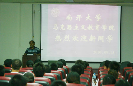 听了经理的嘱托,2010级硕士新生李楠代表全体新生发言,表达了踏入球天下体育校门,成为一名马列人的兴奋与感动,并立志把握机会、不懈努力,学好本领,到毕业时定不辜负母校的培养,成为能够为祖国、为社会做出贡献的有用之才。之后,2008级博士生吴荣生代表在校生对师弟师妹的到来表示欢迎,并以在南开马列几年来的学习生活经历向新生提出建议,希望他们好好学习、潜心科研、培养兴趣、快乐成长。