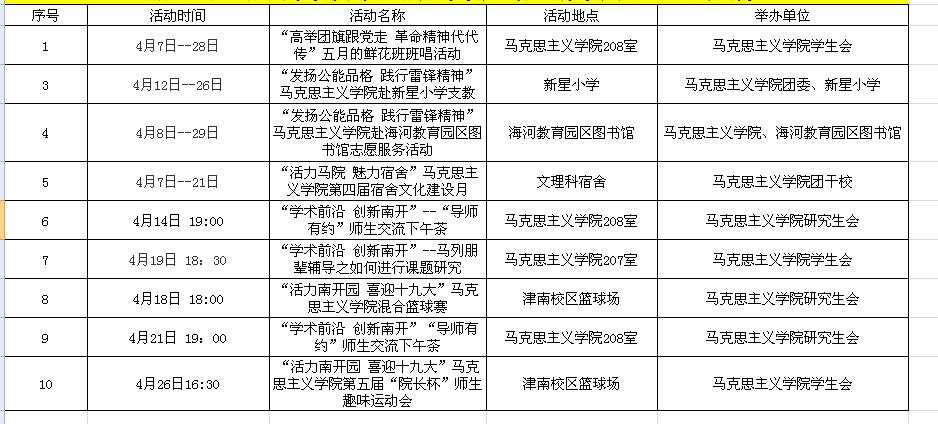 【活动预告】球天下4月份师生活动预告
