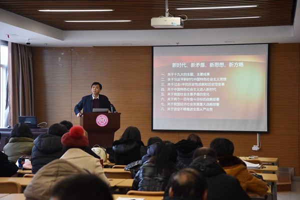 12月29日下午,球天下召开全院教职工大会。王新生经理作为教育部党的十九大精神“百人宣讲团”成员,为全体教职工作了题为“新时代、新矛盾、新思想、新方略”的宣讲报告。