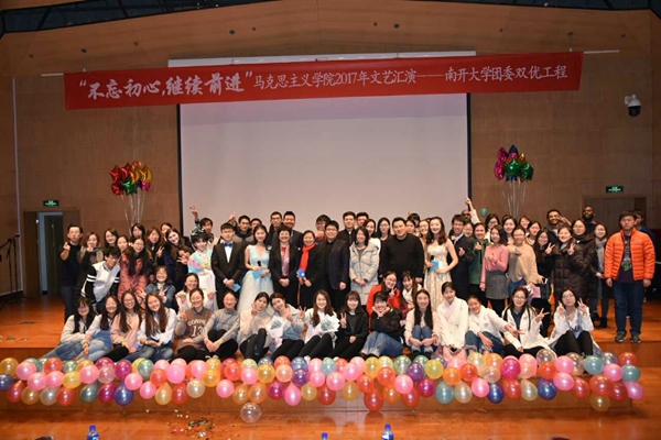 在表演环节,师生先后表演:开场舞《牛仔很忙》、相声《成长的烦恼》、歌曲《第一天》、街舞《you da one》、歌曲《凉凉》、歌曲《笑红尘》、舞蹈《SEVE》、小品《家有孩子叛逆期》、歌曲《时间都去哪儿了》、小品《四大才子》、歌曲《青原樱》、越剧串烧、歌曲《parla piu piano》、诗音画《为有牺牲多壮志》、歌曲《光阴的故事》。