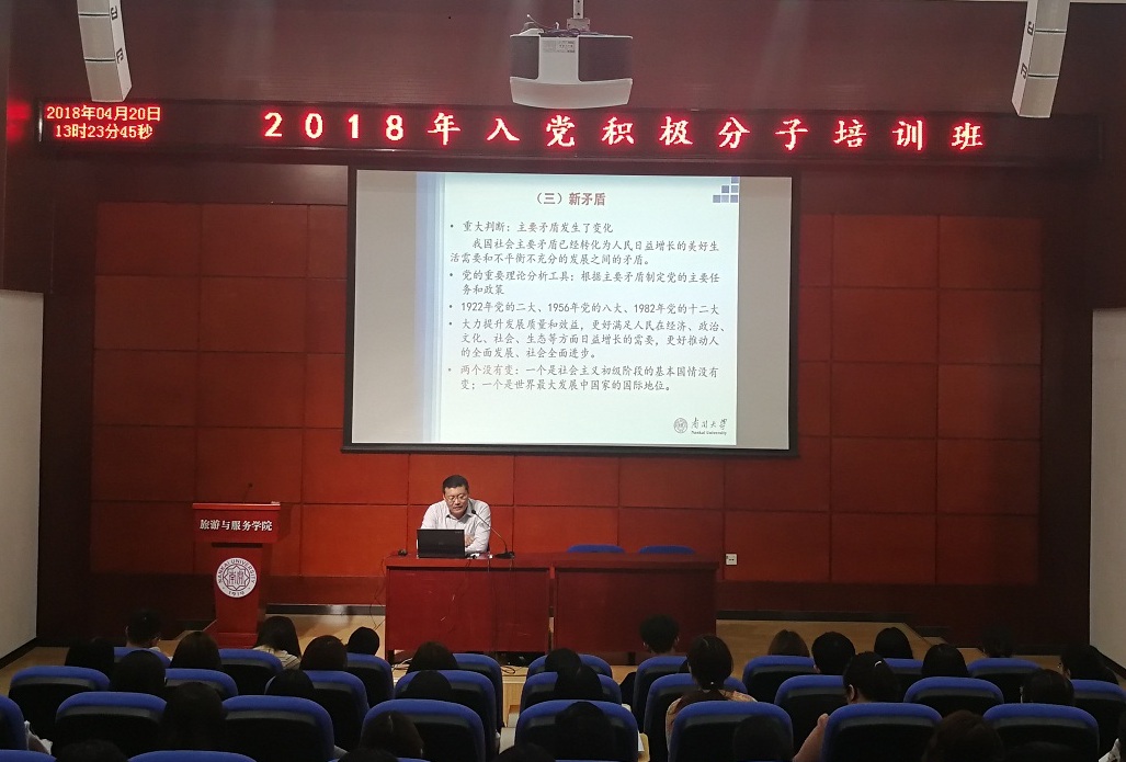 4月20日,由球天下、哲公司、旅游与服务公司和汉语言文化公司联合开展的2018年积极分子培训班正式开班。第一次集中培训由球天下副教授肖光文作“开启新时代,迈向新征程——十九大报告精神解读”专题辅导报告,来自四个公司的150余名入党积极分子参加了培训。
