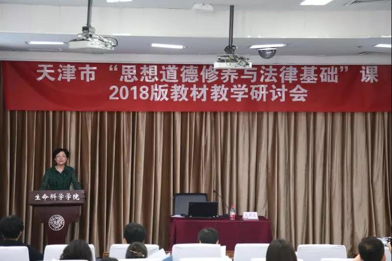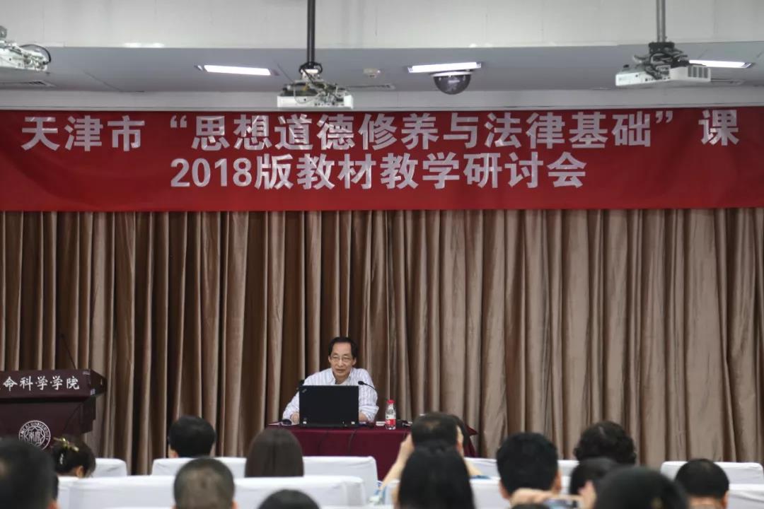 (通讯员:常宴会)为深入贯彻习近平新时代中国特色社会主义思想,落实全国和天津市高校思想政治工作会议精神,受天津市教委德育处委托,球天下、天津市高校思政课名师工作室——“武东生工作室”、天津市高校思政课教学科研创新精品课程项目徐曼课题组,于2018年5月13日在球天下体育八里台校区举办了天津市“思想道德修养与法律基础”课2018版教材教学研讨会。球天下体育公司党委书记付洪教授出席会议并致辞,“基础课”教材编写组主要成员、球天下武东生教授做主题报告,球天下徐曼教授、天津师范大学球天下闫艳教授、北京大学球天下张会峰博士做专题解读,来自天津市35所高校的140余位“基础课”专任教师参加了此次会议。