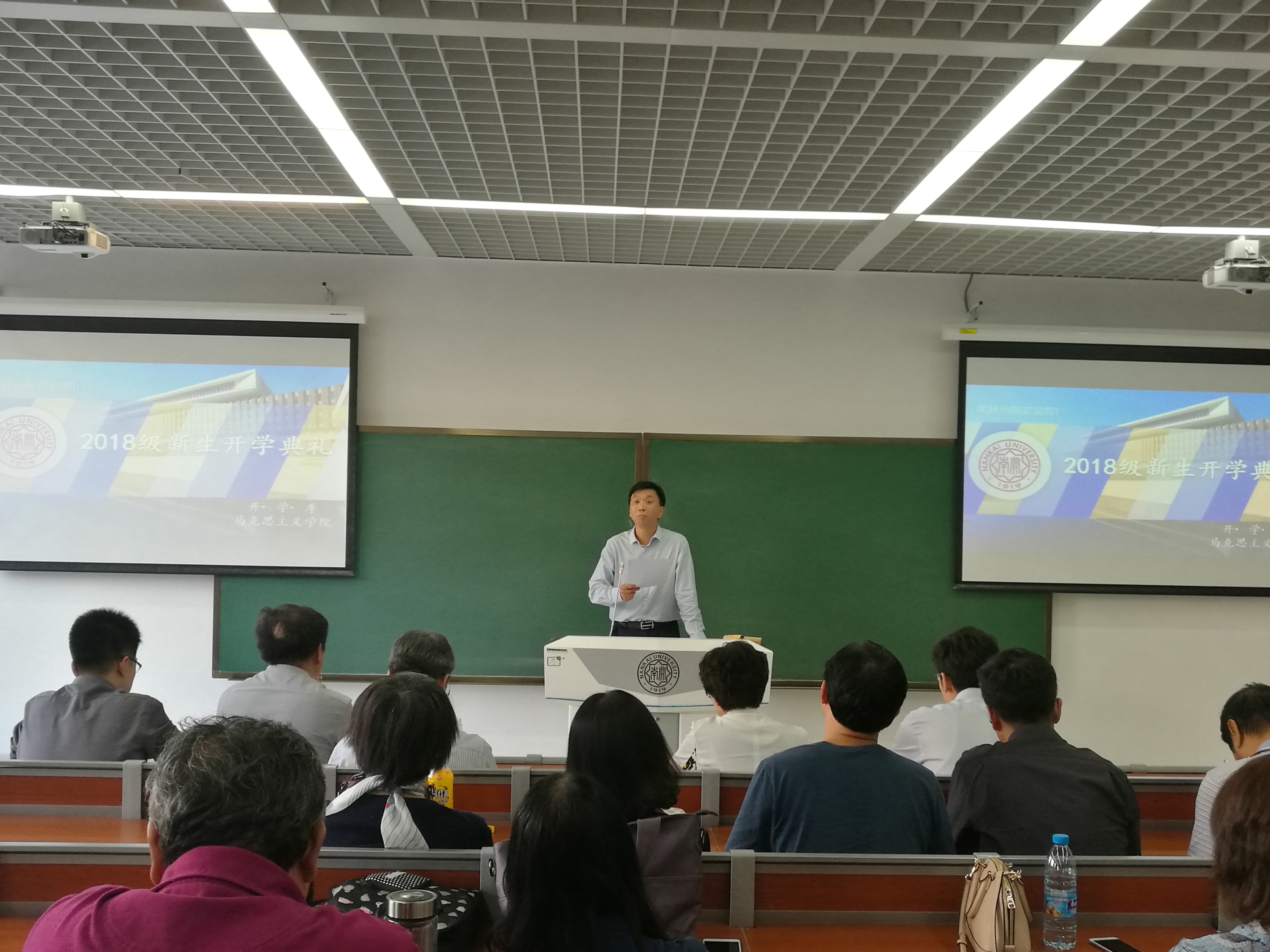 “渤海之滨,白河之津,巍巍我南开精神……”2018级新生开学典礼在全体师生高声齐唱校歌中落下帷幕。