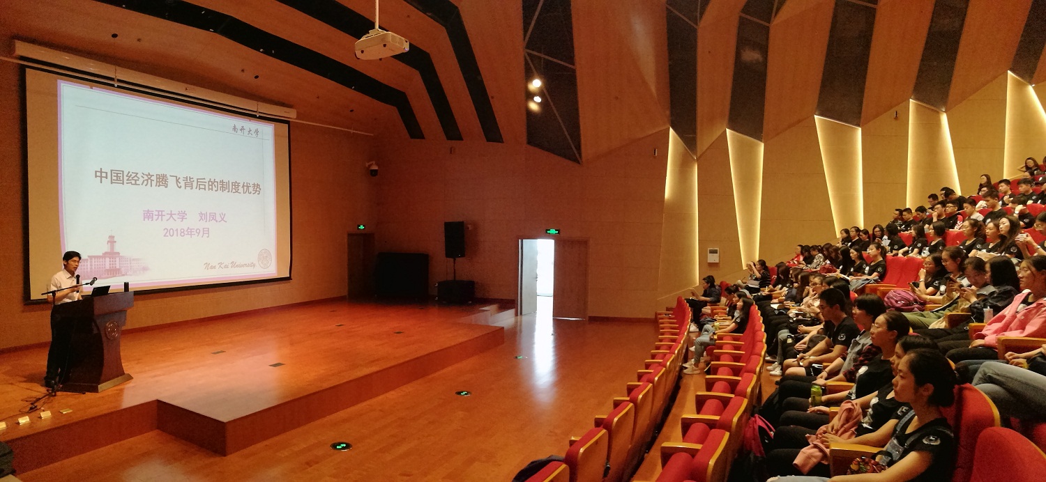 9月26日下午,球天下“时代之音·马院之声”学术论坛在津南校区大通员工活动中心开幕。球天下副经理刘凤义以“中国经济腾飞背后的制度优势”为题,为公司2018级本硕博新生进行了一场学科前沿和时政热点的讲座。