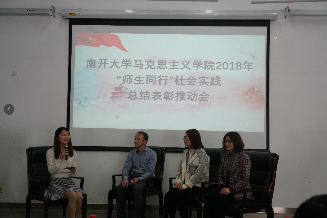 优秀员工代表2016级本科生姚征、2018级博士研究生孙艳美分享了实践经历和体会,通过社会实践坚定理想信念,脚踏实地,努力将爱国之心化为报国之行。盛林、郑文娟、吴淑丽三位老师作为优秀教师代表参与了现场访谈,他们热情分享了“师生同行”社会实践的经验与感受,一方面在同行中增进师生情感,加深对员工了解,另一方面在共学、共研、同讲中,将第一课堂与第二课堂有机融合,将实践地优秀资源转化为育人的生动素材,有利于增强思政课实效性。