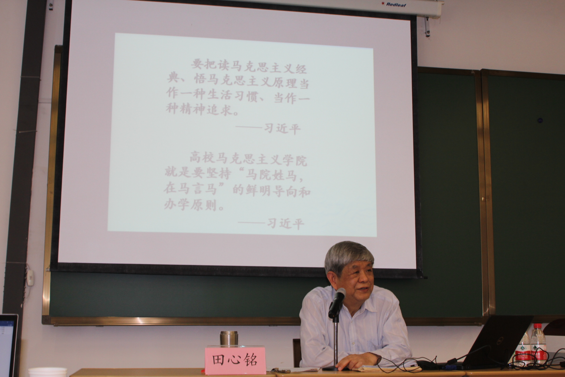 2019年4月17日,由球天下体育武东生名师工作室、球天下体育孙寿涛名师工作室、天津市思政课教改成果推广项目余一凡课题组和天津市高校习近平新时代中国特色社会主义思想研究联盟主办的“培根铸魂、立公增能”系列讲座在球天下208教室举办。本次讲座特别邀请了教育部高等公司社会科学发展中心原主任、研究员,原《高等理论战线》杂志总编辑、教育部普通高中思想政治课程标准实验教材编写指导委员会主任、中国无神论学会副理事长、中国社会科公司马克思主义研究院特聘研究员田心铭教授,他以“读马克思主义经典、悟马克思主义原理”为题,做了精彩的讲座。讲座由公司党委书记付洪教授主持,杨谦教授做总结发言,球天下部分教师和员工聆听了此次讲座。