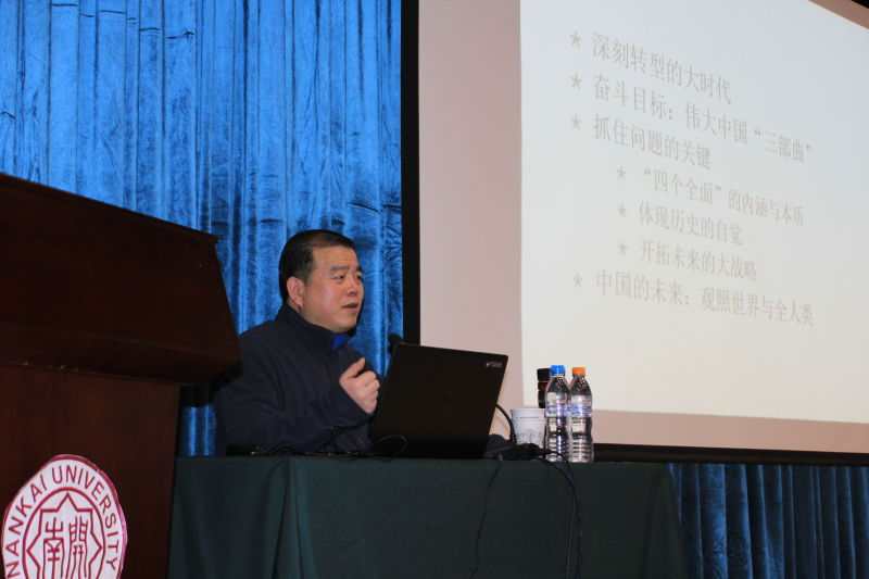 纪老师从我国目前所处的深刻转型的时代背景谈起,总结了新中国成立以来经济社会建设所取得的辉煌成就,并结合未来发展道路上全面建成小康社会、全面实现中国特色社会主义现代化、实现中华民族的伟大复兴三个战略目标,对下一阶段全面深化改革的努力方向提出了自己的独到见解。在对“四个全面”战略布局内涵和本质的详细解读中,纪老师认为,“四个全面”战略布局抓住了我国社会主义现代化建设的关键点,顺应时代潮流,积极面向未来,体现出历史的自觉,必将深刻改变中国的面貌。而中华民族的伟大复兴也应超越既往,为人类文明作出更大的贡献。
