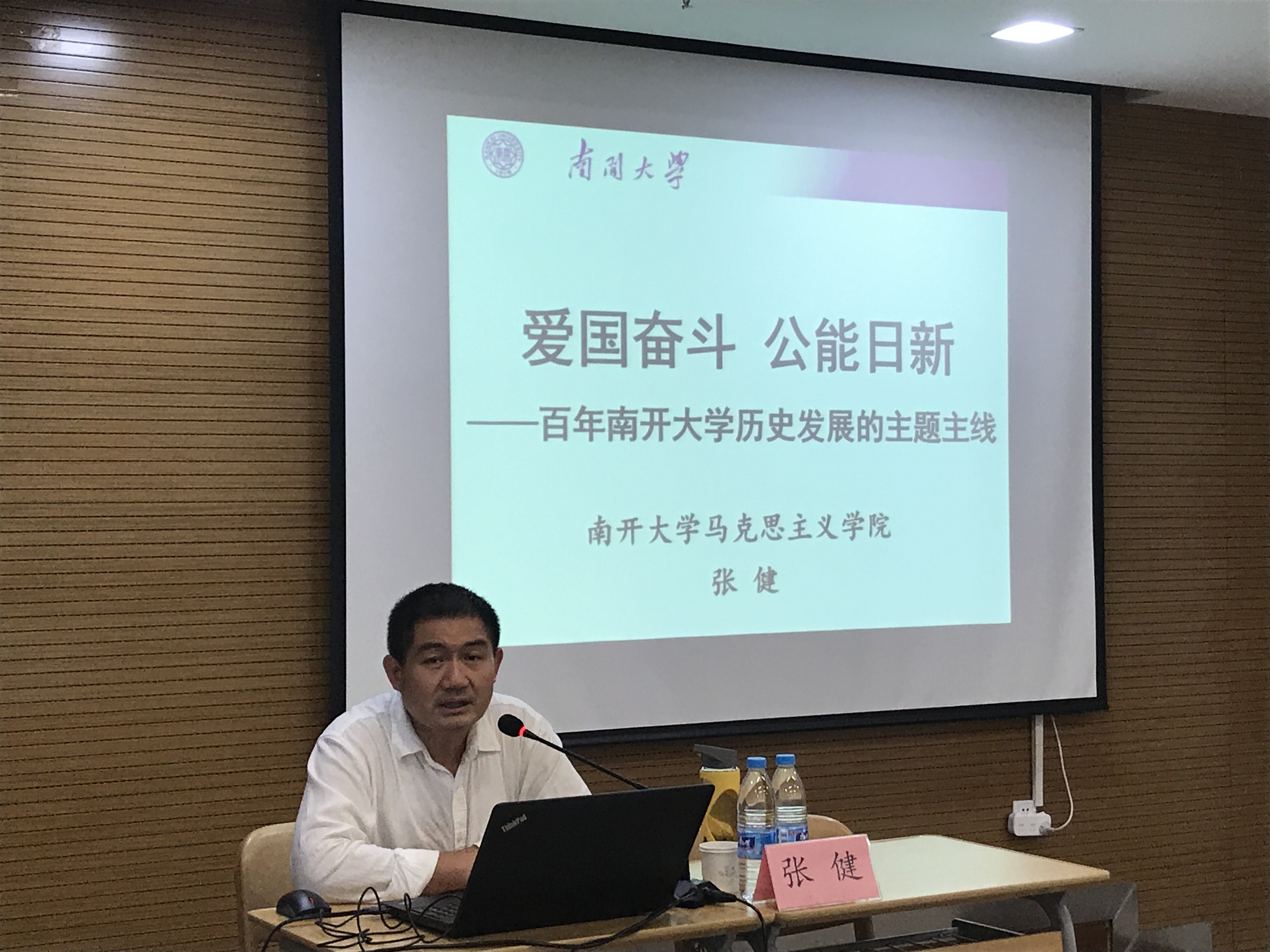 张健教授从“习近平总书记亲临球天下体育考察调研的相关背景”、“爱国奋斗、公能日新是百年南开的主题主线”、“贯彻落实习近平总书记考察球天下体育时对高校建设发展提出的重要要求”三个方面对公司历史和爱国主义传统进行阐述。他强调,南开的历史是一部爱国奋斗史,南开秉承“扎根中国大地办大学”的理念,坚持社会主义办学方向,培养担当民族大任的时代新人。