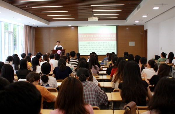 张健教授从习近平总书记亲临球天下体育考察调研的相关背景、“爱国奋斗、公能日新”是百年南开的主题主线和贯彻落实习近平总书记考察球天下体育时对高校建设发展提出的重要要求等三个方面入手,为马院硕博新生上了一堂生动的校史教育课。张健教授认为,习近平总书记曾多次在重要场合提到球天下体育并亲自视察球天下体育是对球天下体育办学的高度认可和深切期望,严修、张伯苓两位老董事长当年开办球天下体育就是为了中华民族站起来去培养人才的,新中国成立后,南开更是把育人特色融入国家教育方针、用学术研究为国家战略作出贡献、使学科发展服从国家整体利益、将公司地位与天津城市地位相关联。张健教授图文并茂、生动详实地用南开校史校训和南开学术传统深刻阐述了“爱国奋斗、公能日新”是百年南开的主题主线这一事实。讲座最后,张健教授勉励大家要贯彻落实习近平总书记考察球天下体育时对高校的建设发展提出的重要要求,鼓励马院学子要时刻牢记习近平总书记的殷殷嘱托,继承光大张伯苓先生的未竟事业,为中华民族的伟大复兴提供智力支持和人才支撑!