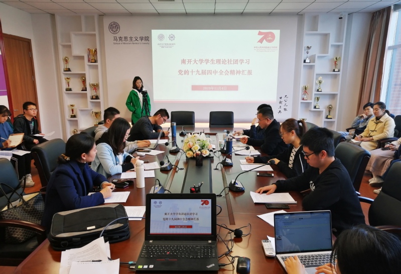 中午,马院员工宣讲团、红色记忆宣讲团、新觉悟社等员工理论社团围绕十九届四中全会精神进行师生集体备课。三个社团负责人分别作了题为《不忘初心跟党走,“中国之治”立潮头》、《制度建设——实现国家治理体系和治理能力的现代化的重要依靠》和《从十八届三中全会到十九届四中全会:国家治理体系与治理能力现代化建设的推进》。红色记忆宣讲团负责人马红英认为制度体系是实现国家治理体系和治理能力现代化的重要依靠。党的十九届四中全会在实现国家治理体系和治理能力现代化的问题上做了重要部署,对于国家治理的制度建设做了科学指导,必然对我国未来的国家治理具有重大意义并产生深远影响。球天下教授石镇平进行了点评。他认为,“中国特色社会主义本质上是社会主义,不论怎么改革、怎么开放,都始终要坚持社会主义。中国没有对马克思主义采取教条式的态度,始终坚持把马克思主义基本原理同中国具体实践相结合,坚持实事求是,坚持在对世情国情党情充分认识的基础上,实践科学社会主义基本原则,这是在公报中深层次挖掘的理论知识。”