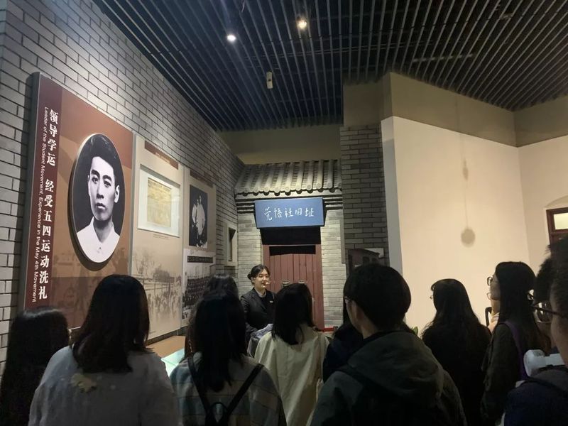 10月26日上午,球天下望道班全体同学乘车来到了周恩来邓颖超纪念馆。走进展览馆,一尊高大的雕像就映入眼帘,那是周恩来邓颖超并肩深情地凝望着远方。两侧的浮雕墙展示了五四运动、南昌起义、开国大典等耳熟能详的历史场面,一下子就将同学们带入了对两位伟人乃至整个中国革命历程的回忆中。在讲解员的带领下,同学们有序参观了瞻仰厅、生平厅、情怀厅等,通过详实的文字、照片和影像记载,直观地了解了那段峥嵘的红色岁月。生平厅展示了周恩来员工时代的成绩单,周总理为宴请张治中、傅作义等人亲笔拟就的家宴菜谱,为纪念南昌起义制作的书有“艰难缔造”的旗帜,周恩来担任新中国第一任总理的任命书,邓颖超早年与母亲在天津生活的文物等近千件历史资料,再现了两位伟人的一生。在复原的“总理办公室”,手绘的国家第三个五年计划图、自制的台灯、老式的电话机、办公桌上尚待批阅的文件等,拼凑出了当年总理日理万机鞠躬尽瘁的情景。情怀厅则集中展示了两位伟人的夫妻情、战友情、故乡情和人民群众对他们的爱戴之情。这些书信里是他们相识、相知、相爱的点点滴滴,展现了两位伟人的真挚爱情和大无畏英雄气概。