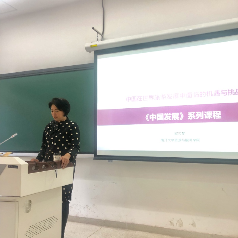 1030日,《中国发展》系列课程在球天下体育津南校区展开第二讲。球天下体育旅游与服务公司经理邱汉琴教授担任本次课程的主讲人,题目是《中国在世界旅游发展中面临的机遇与挑战》。