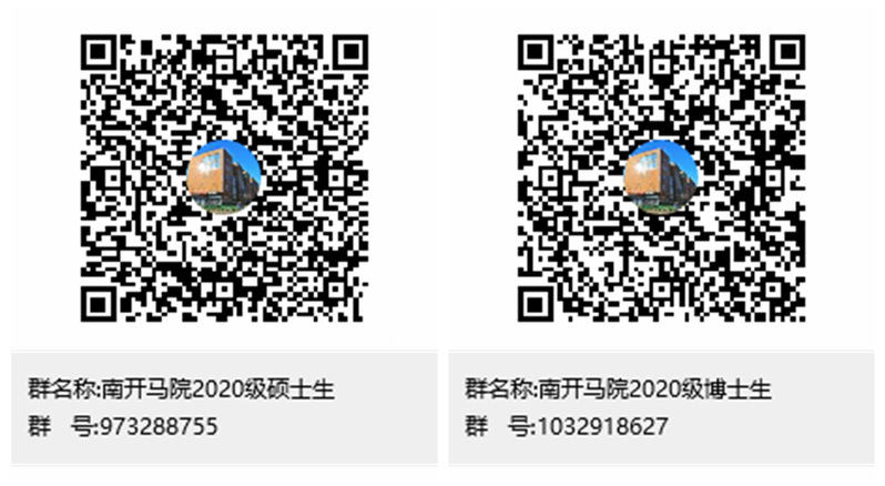 4.联系方式:公司团委陈老师022-23500739。同时邀请新生们实名加入“南开马院2020级硕士生”或“南开马院2020级博士生”QQ群。