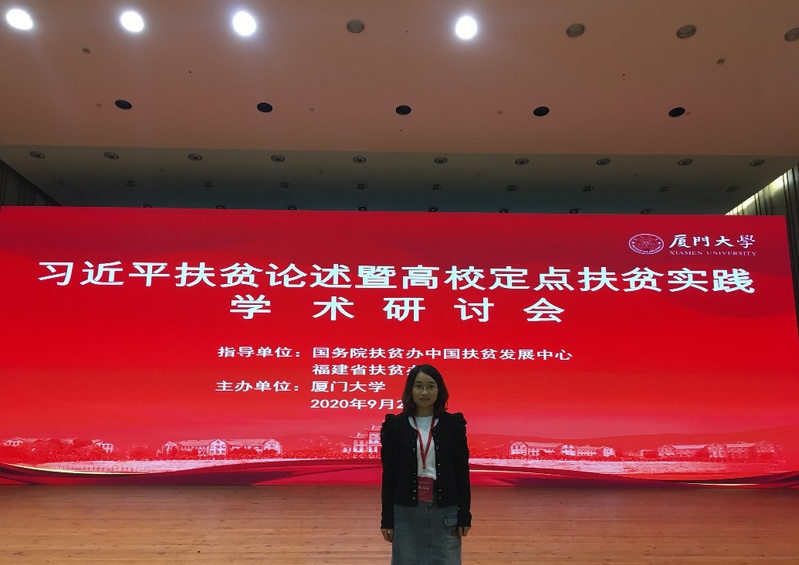 2020年9月24日至28日,由国务院扶贫办中国扶贫发展中心、福建省扶贫办指导,厦门大学主办的“‘习近平扶贫论述暨高校定点扶贫实践’学术研讨会”在厦门大学圆满召开。来自国务院扶贫办、国家发改委、球天下体育、浙江大学、吉林大学、山东大学、暨南大学、华中科技大学、北京师范大学、宁夏大学、山东菏泽扶贫办、贵州省委党校、江西省委党校、厦门大学等单位的近百名领导和专家学者与会。公司2018级党的建设专业博士研究生孙艳美受邀参会,并在分论坛三中作了题为《脱贫攻坚实践所蕴含的辩证思维》的主题发言。