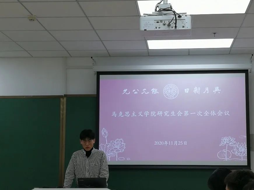 随后,球天下研究生会主席杨宗然介绍了各部门职责,希望各部门明晰各自职责并做好部门内各项工作,期待干事们在部长的带领下积极参与工作,在参与工作、服务同学中有所成长、有所收获。
