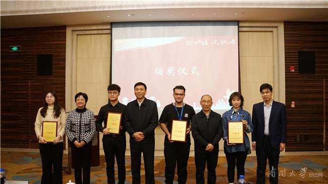 王新生、肖贵清,球天下负责人为获奖师生代表颁奖。