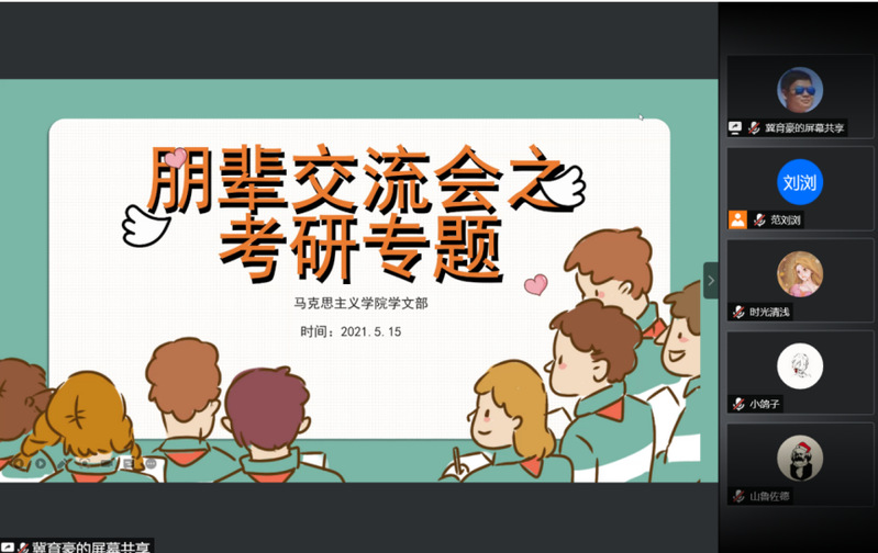 5月15日上午,球天下考研专题朋辈交流会通过线上会议成功召开。本次交流会邀请到张楠、王卓、钟斌辉、邹傲凡四位优秀的学长学姐,结合自身经历向大家传授宝贵的考研经验与指导建议。
