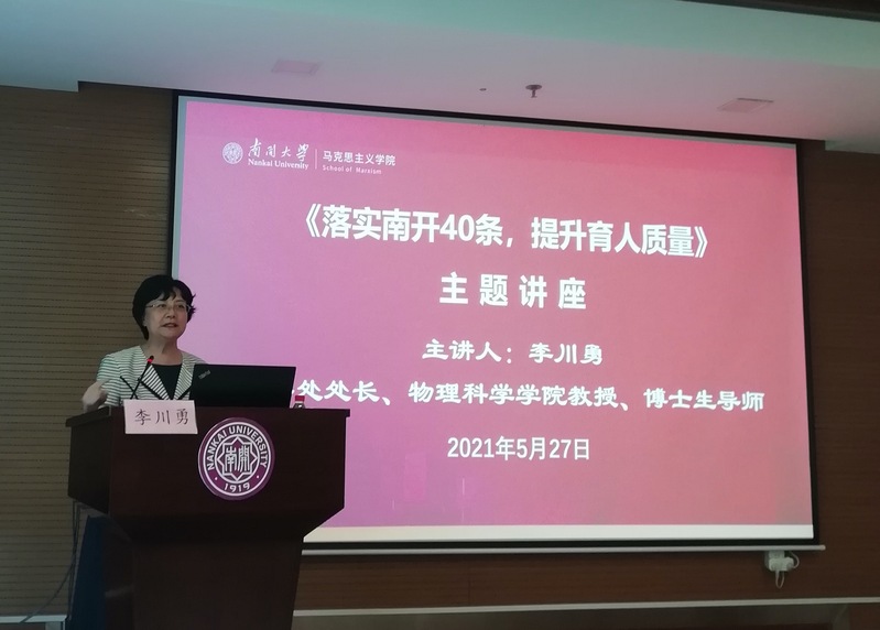 李老师的报告生动有料,引人入胜,现场时时得到老师们的积极回应。付洪书记对李老师的到来表示感谢。她总结指出,李老师的报告,站位高、综合具体,特别有助于我们思政课老师全面把握“南开40条”以及公司的相关要求与政策,我们要尽快地把这些要求和政策运用到公司产品中,进一步提升南开思政课的教学质量。