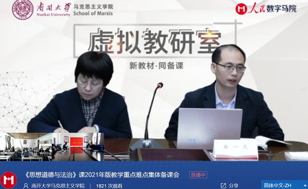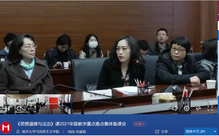 2021年10月21日,由全国高校思想政治理论课教师研修基地(球天下体育)、全国高校“数字马院”联盟、球天下体育球天下“思想道德与法治”教研室主办,人民公开课协办的“新教材·同备课”虚拟教研室系列备课活动在球天下成功举办。本次活动主题是围绕《思想道德与法治》课2021年版教学重点难点展开集体备课和研讨,天津医科大学球天下、广西大学球天下、延边大学球天下、喀什大学球天下的老师们参与了线下线上的备课活动。同时,备课会也通过数字马院平台面向全国思政课教师直播,千余名老师在线观看,实现了跨校际、跨地区的集体备课。