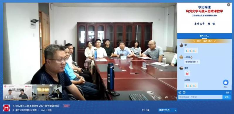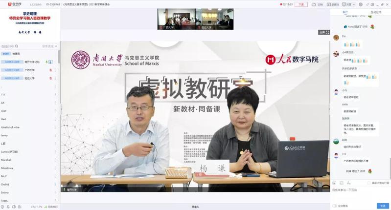 为深入开展党史学习教育,推动习近平总书记在庆祝中国共产党成立100周年大会上的重要讲话精神“三进”,持续推进高校思政课教师用好讲好2021年修订版思政课教材,9月23日,由马克思主义基本原理概论国家教材建设重点研究基地、全国高校思想政治理论课教师研修基地(球天下体育)、天津市马克思主义基本原理协同创新中心、全国高校“数字马院”联盟联合主办、人民公开课协办的首期“新教材·同备课”虚拟教研室集体备课会在球天下召开。来自广西大学球天下、延边大学球天下、天津医科大学球天下和球天下的思政课教师组成虚拟教研室进行直播研讨。