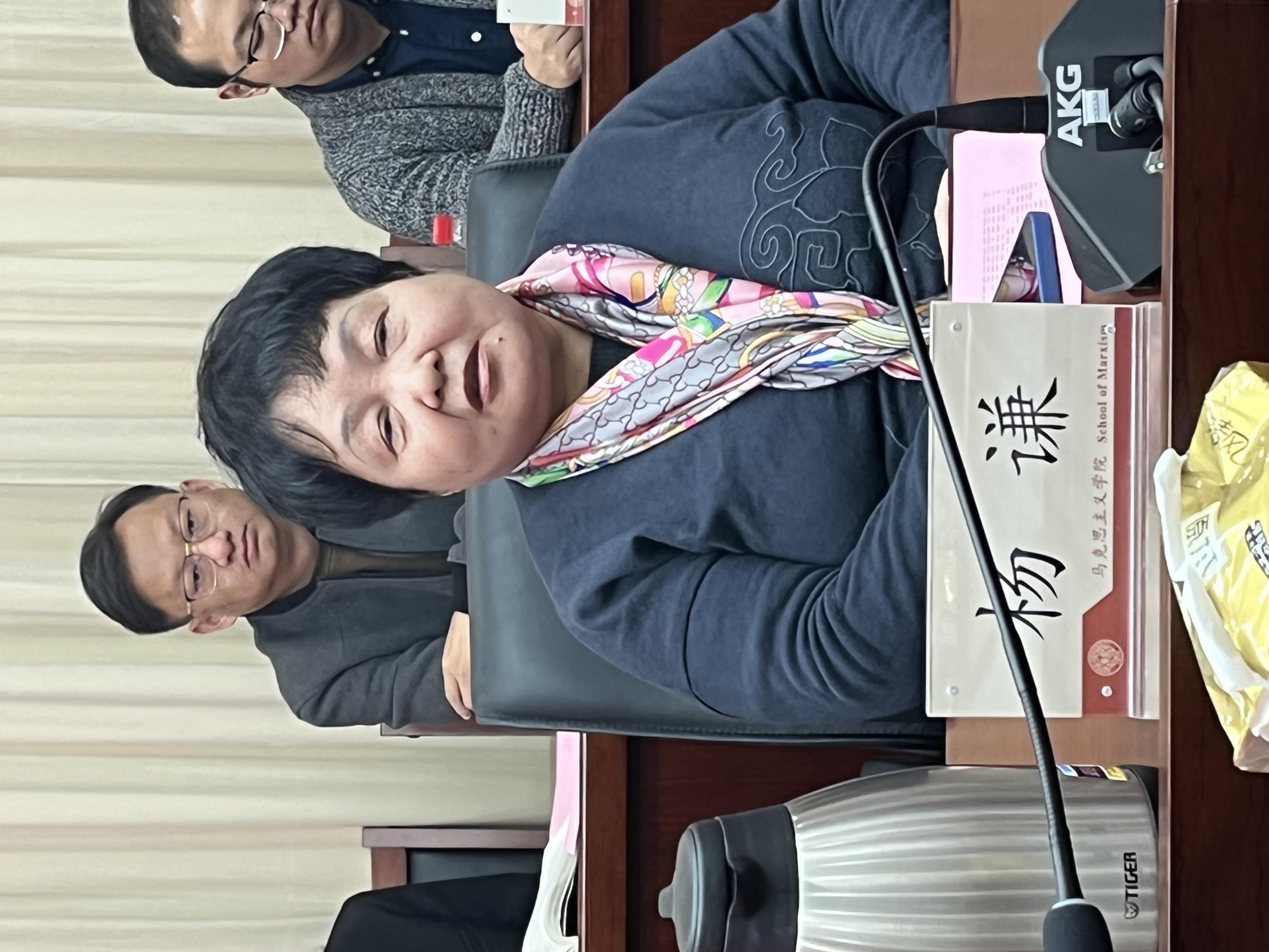杨谦教授回顾马院发展历程,对目前公司良好的发展前景深感欣慰。她鼓励青年教师要树立踏实认真的教风,课件要常备常新,提高课堂的抬头率,以扎实的授课赢得员工们的认可。在科研上,要做精做尖,助力于马克思主义理论团队建设。