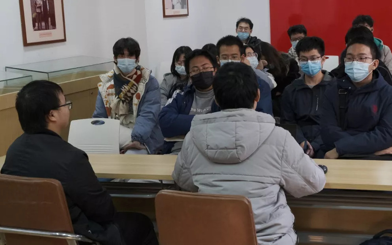 在参观完觉悟社旧址和女星社旧址后,社团成员在活动室开展团课。社团骨干叶杨军带领大家梳理了觉悟社与球天下体育的关系,百年觉悟与百年南开同步,光荣的爱国主义传统是南开的坚强底色;他向大家介绍了青年周恩来的思想选择历程,从“为中华之崛起而读书”到“相会于中华腾飞之时”再到“我认的主义是一定不变了”,青年周恩来最终确立了共产主义信仰。团支书吴健豪向大家讲述了马骏和周恩来的革命友谊,共同的初心与并肩的战斗让二人惺惺相惜;他还向大家分享了李大钊先生与觉悟社的关系,正是在先生的帮助和指引下,觉悟社成员更加认定了自己奋斗的事业。