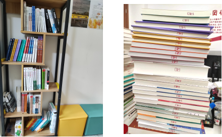 1.图书区:公司购置了许多心理学相关书籍,帮助大家在放松心情的同时增长心理知识。在这里,大家可以看到种类众多、内涵丰富的图书整齐地摆放在书架上,大家可以自由地阅读书架上面的书籍。而且图书上都是有盖章的哦,请大家认准马院的小马印章。如此精彩的图书区正在等待着你的到来!(为了让图书漂流起来,借阅书籍时请自主登记并按期归还哦!)