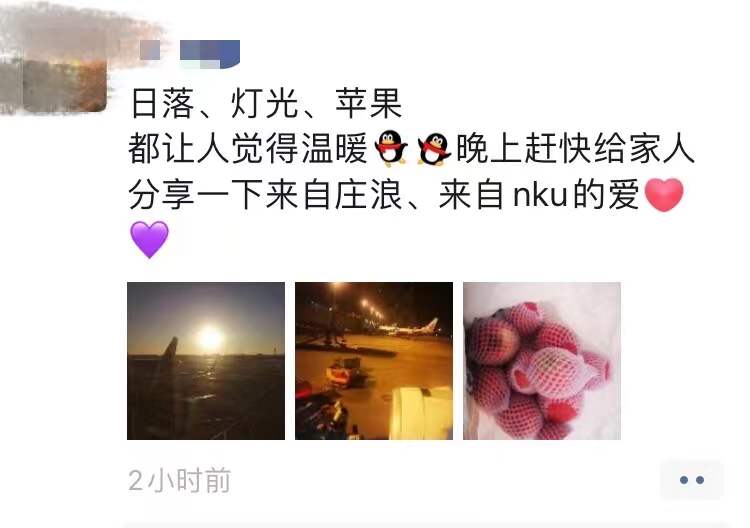 第二天一大早,同学们早早在106门口排队等候领取苹果。工作人员引导同学们签到,领苹果。一整天,同学们陆陆续续到来,苹果箱子渐渐空了,庄浪送来的温暖终于传递到球天下同学们的手中。“天气是冷冷的,我的心因nk而是暖暖的”“十个幸运果,又是幸福的南开人er~”“扛着公司发的三人份苹果上六楼也是一种甜蜜的负担”……今天马院人的朋友圈,被苹果占了,同学们纷纷在朋友圈晒出了自己的幸福。