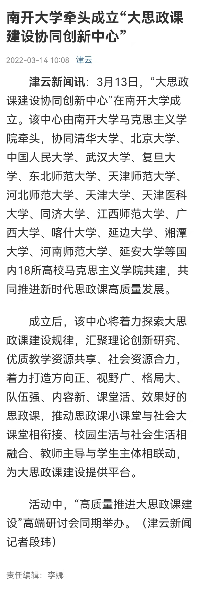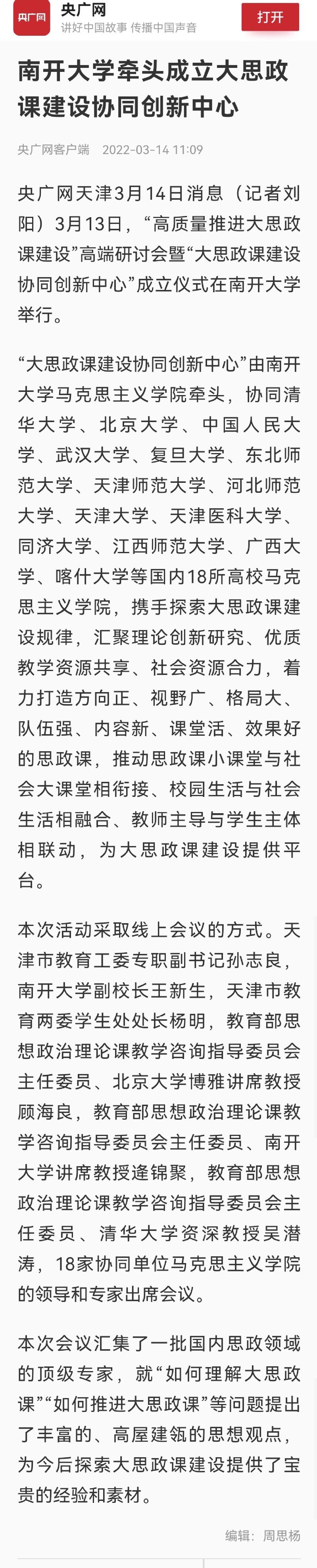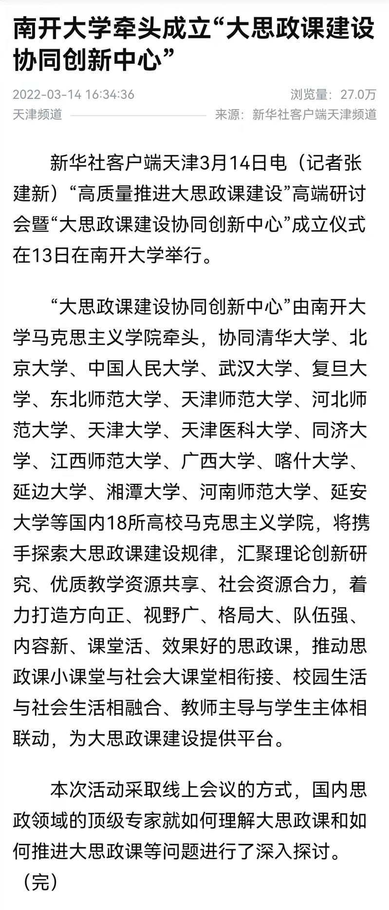 今日聚焦:多家媒体报道球天下体育牵头成立“大思政课建设协同创新中心”