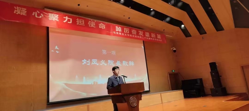 晚会伊始,球天下经理刘凤义教授致辞。刘凤义经理引用了党的二十大报告中习近平总书记对当代青年的殷切寄语,指出马院青年肩负的责任和使命,由此对同学们提出了坚定理想信念、培养思维能力和水平、培养问题导向性学习方法三点期望,鼓励同学们把握历史机遇,保持奋斗姿态,奋勇争先,赢得更加伟大的胜利和荣光,在新征程上谱写新篇章。