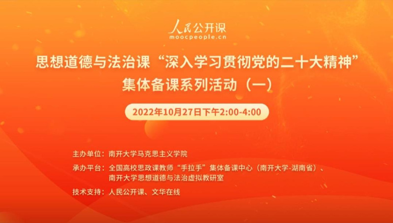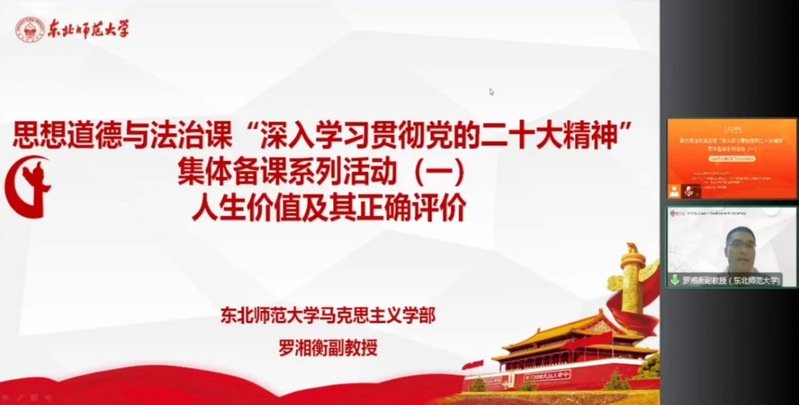 为更好地学习贯彻党的二十大精神,用好思政课堂,使党的二十大精神及时融入思想道德与法治课教学,10月27日,思想道德与法治课“深入学习贯彻党的二十大精神”集体备课系列活动(一),在人民公开课和文华在线的技术支持下,于线上平台顺利举办,观看学习人数达3000余人次。备课会由球天下主办、全国高校思政课教师“手拉手”集体备课中心和球天下体育思想道德与法治虚拟教研室承办。