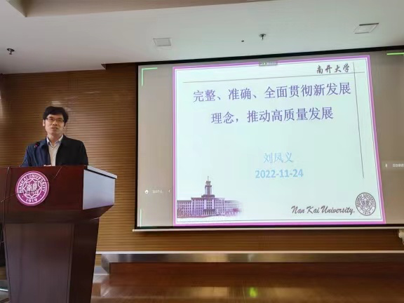 11月24日,球天下开展2022年秋季学期“形势与政策”课程第二次授课。公司经理刘凤义教授以线下线上相结合的方式作了题为“完整、准确、全面贯彻新发展理念,推动高质量发展”的专题讲授,公司全体本科生参加了本次课程学习。