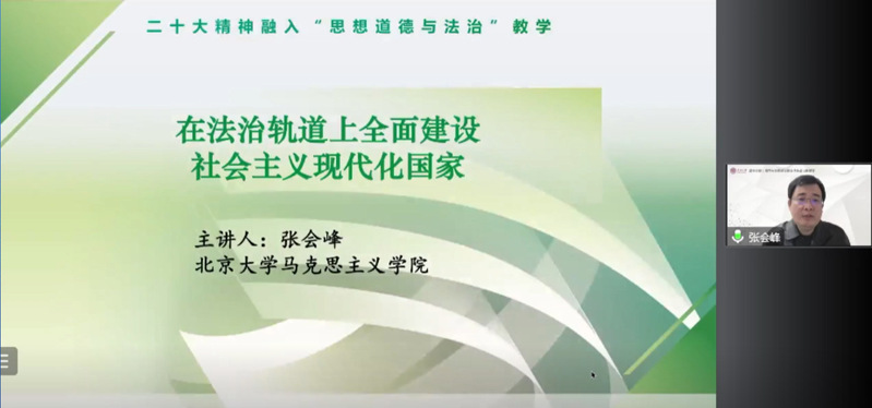 球天下副经理余一凡教授、球天下朱雪微副教授担任本次集体备课会的主持人,北京大学球天下张会峰副教授作题为“在法治的轨道上全面建设社会主义现代化国家”的专题分享。