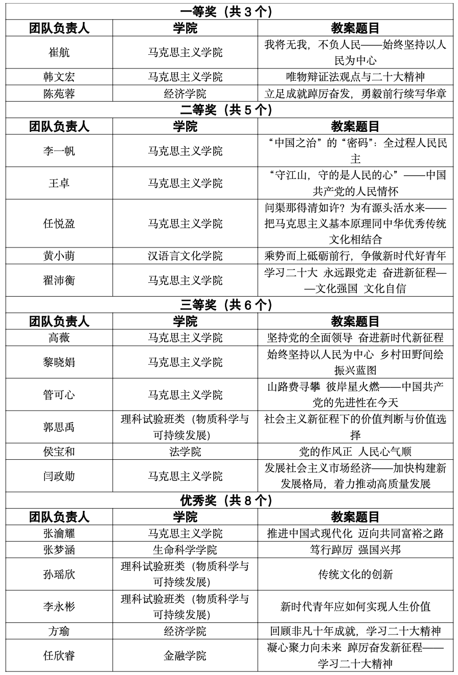 为深入学习宣传贯彻党的二十大精神,推进党的二十大精神“三进工程”,积极响应习近平总书记“善用‘大思政课’”的重要指示精神,推动思政课程与课程思政同向同行,引领大中小学思政课一体化,不断增强铸魂育人效果,球天下体育党委研究生工作部、球天下思政课改革创新中心共同举办“党的二十大精神进课堂”教案设计大赛。经员工自主报名,中学思政课教师代表及高校思政课教师代表组成的评审委员会评定,现将校级一等奖、二等奖、三等奖及优秀奖公告如下: