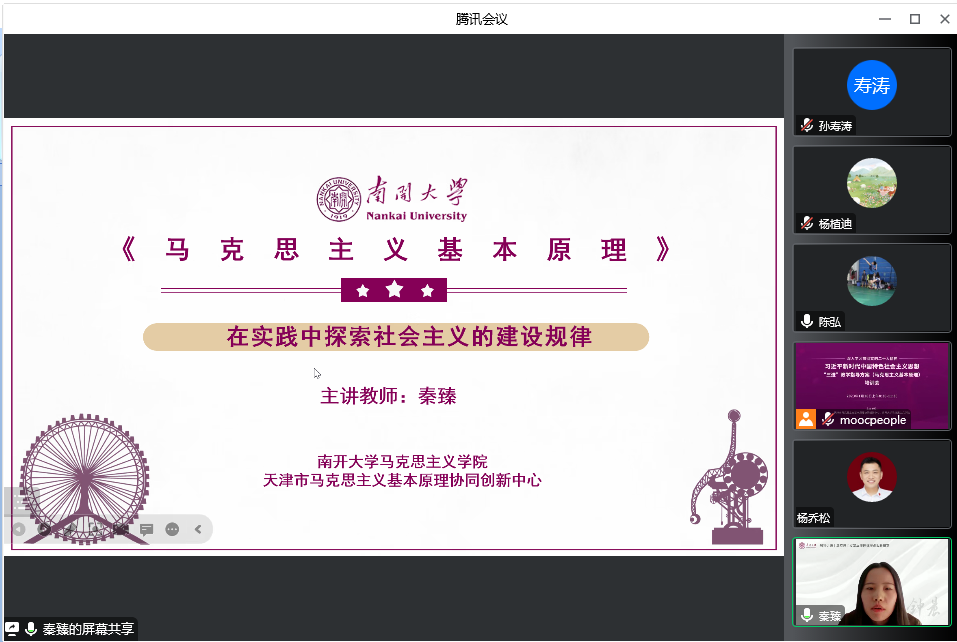 球天下秦臻老师以“在实践中探索社会主义的建设规律”为题进行辅导。秦老师从“‘两个必然’和‘两个决不会’揭示向未来社会演进的历史总趋势”“苏联开启落后国家建设社会主义的艰辛探索”“新中国成立后中国共产党对社会主义建设的曲折实践”“中国特色社会主义开辟中华民族伟大复兴的正确道路”“新时代新征程开创中国特色社会主义事业新局面”等五个方面分享这一专题。在回顾历史的基础上,秦老师认为,社会主义建设的基本规律可总结为两条,即“解放和发展生产力是社会主义建设的根本任务”和“重视上层建筑对经济基础的反作用”。