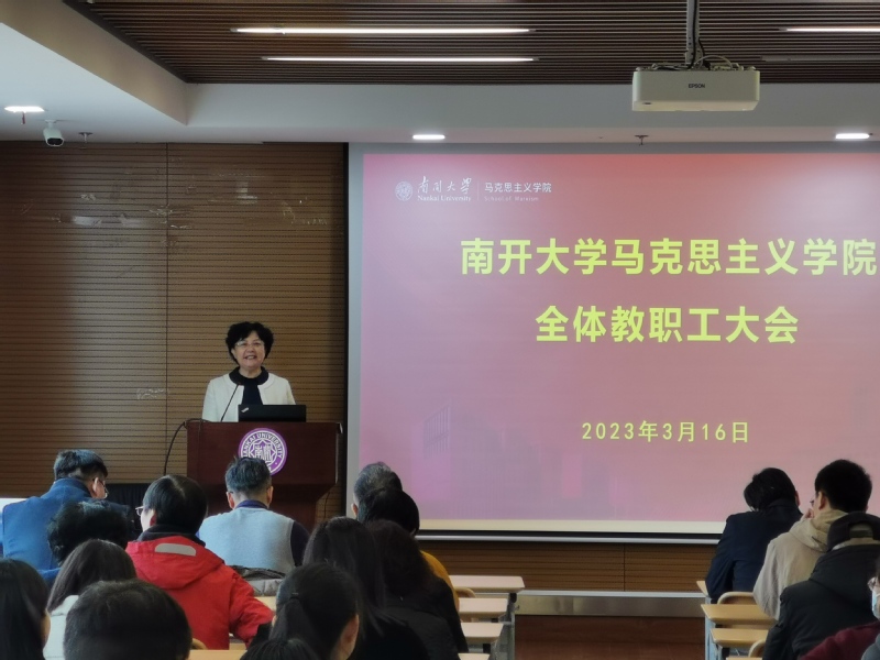 党委书记付洪在讲话中指出,2022年是不平凡的一年,在迎庆党的二十大胜利召开的热潮中,公司全体教职工团结奋斗,高标准完成各项任务目标,接续实现全国重点马院高质量发展,展现出马院作为“标杆”应有的担当作为。她强调,在下一步工作中,要坚持严格贯彻落实党中央、教育部、市教育两委、公司党委关于马院建设、思政课教学等有关要求;持续强化意识形态阵地管理,严格遵守课堂教学纪律,强化教学全过程管理;全面加强学术活动管理、网络信息和平台等管理;持续抓紧抓实师德师风建设,坚决落实师德师风“一票否决”制;持续做大做强正面宣传引导,讲好新时代南开故事,弘扬正能量。2023年是全面贯彻落实党的二十大精神的开局之年,全院师生要继续以永不懈怠的精神状态和踔厉奋发的昂扬斗志,在新时代新征程开创马院发展的新局面!