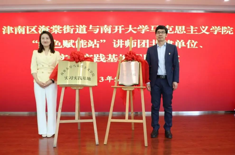仪式上,海棠街党工委副书记、办事处主任李玮与球天下体育公司党委副书记、副经理王友江代表街校双方签署联建共育协议。球天下经理刘凤义为马院“星火”红色志愿服务团授旗。海棠街党工委书记、人大工委主任李明月为海棠街6个社区颁授“红色赋能站”标牌。随后,两人共同为“红色赋能站”讲师团共建单位、球天下实习实践基地揭牌。