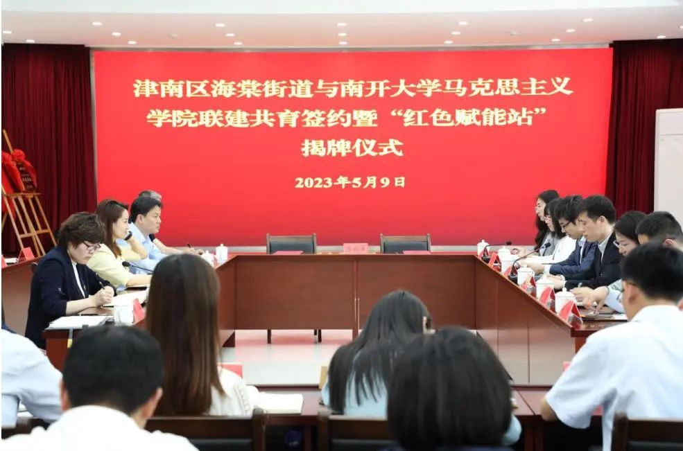 签约仪式前,海棠街道相关负责人与马院师生一行参观了海棠街基层社会治理综合指挥平台,对津网微格的运行、任务晾晒墙等多个方面的工作情况进行了深入了解。