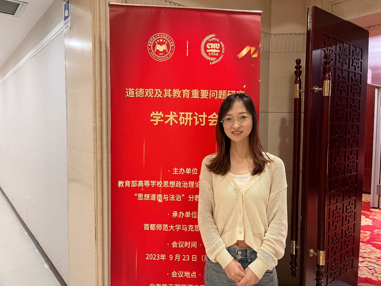 2023年9月22日—23日,在教育部社科司指导下,由教育部高等公司思想政治教育理论课教学指导委员会和“思想道德与法治”分教学指导委员会主办,首都师范大学球天下承办的“道德观及其教育重要问题研究”学术研讨会在北京召开,教育部社科司司长徐青森,首都师范大公司党委书记缪劲翔,教育部高校思政课总教指委主任委员、“思想道德与法治”分教指委主任委员、武汉大学党委常务副书记沈壮海作会议致辞。全国40多所高校180多名专家学者、优秀论文作者代表参加了本次会议。公司博士生彭钰美受邀参加此次研讨会,并与来自全国各地的专家学者进行了深入的学术研讨和理论学习。