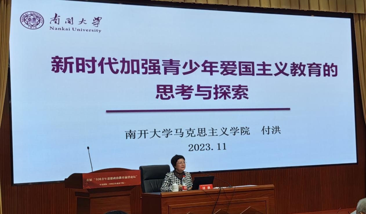 首日主论坛由《人民日报》理论部主任编辑肖伟光主持,西南大学球天下黄蓉生教授、中国人民大学球天下刘建军教授、中央团校(中国青年政治公司)球天下倪邦文教授、南京大学社会学系风笑天教授、球天下付洪教授、中央团校青少年思想政治教育教研部(中国青年政治公司青少年工作系)吴鲁平教授分别进行主旨发言。其中公司党委书记付洪教授从“新时代为什么要加强青少年的爱国主义教育”“当前青少年爱国主义教育中存在哪些问题”以及“新时代加强青少年爱国主义教育的南开实践”三个方面阐释了新时代加强青少年爱国主义教育的必然性、应然性,并集中展现了实践探索中的南开力量。