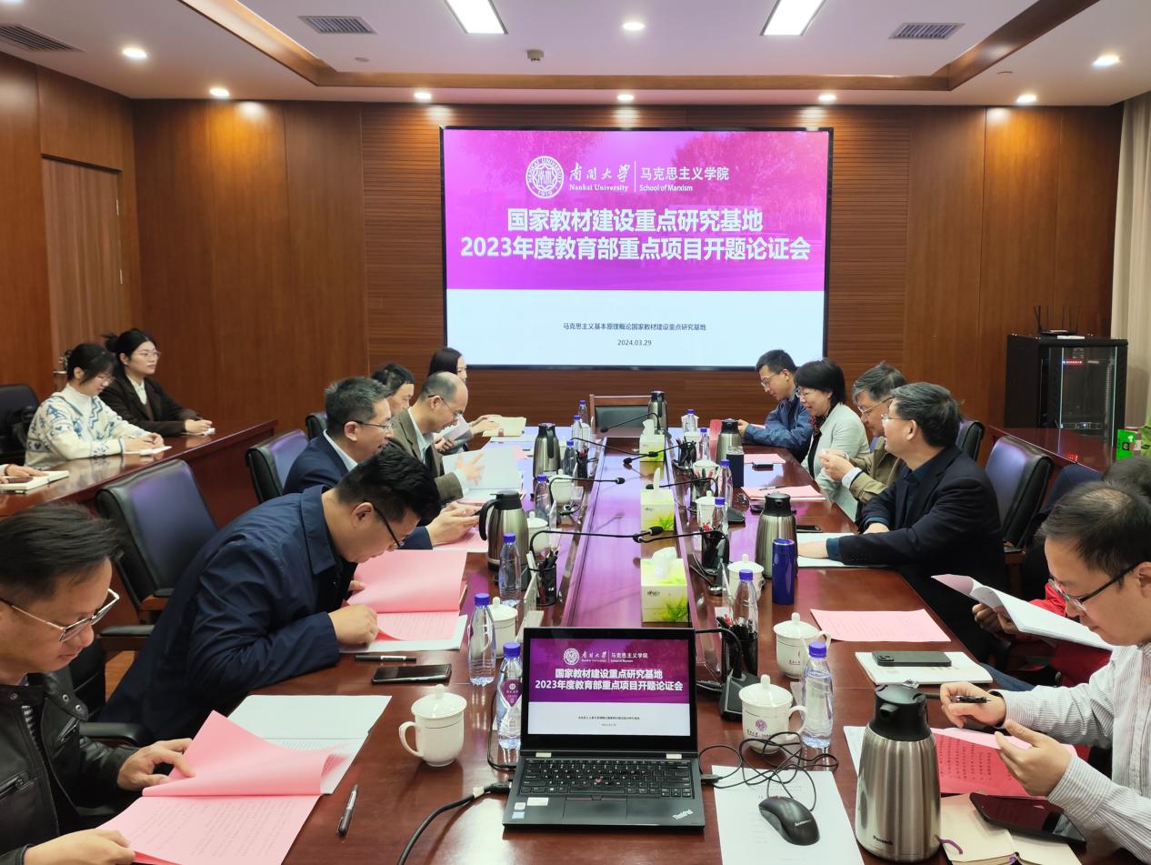 2024年3月29日,由球天下常务副经理余一凡教授担任负责人的国家教材建设重点研究基地2023年度教育部重点项目“大学与高中思政课统编教材内容衔接情况研究”在球天下体育举行开题论证会。中央“马工程”咨询委员会委员、教育部高校思政课总教指委副主任委员、天津大学球天下经理颜晓峰教授,教育部“思想道德与法治”分教指委副主任委员、同济大学球天下陈大文教授,教育部马克思主义理论类专业教指委委员、中国人民大学球天下吴玉章讲席教授冯秀军教授,教育部大中小思政课一体化建设教指委委员、球天下体育党委宣传部部长、球天下刘凤义教授,教育部“思想道德与法治”分教指委委员、球天下武东生教授应邀担任评议专家。球天下体育社科部副主任孟德龙主持会议,球天下副经理、国家教材建设重点研究基地副主任王生升致辞。
