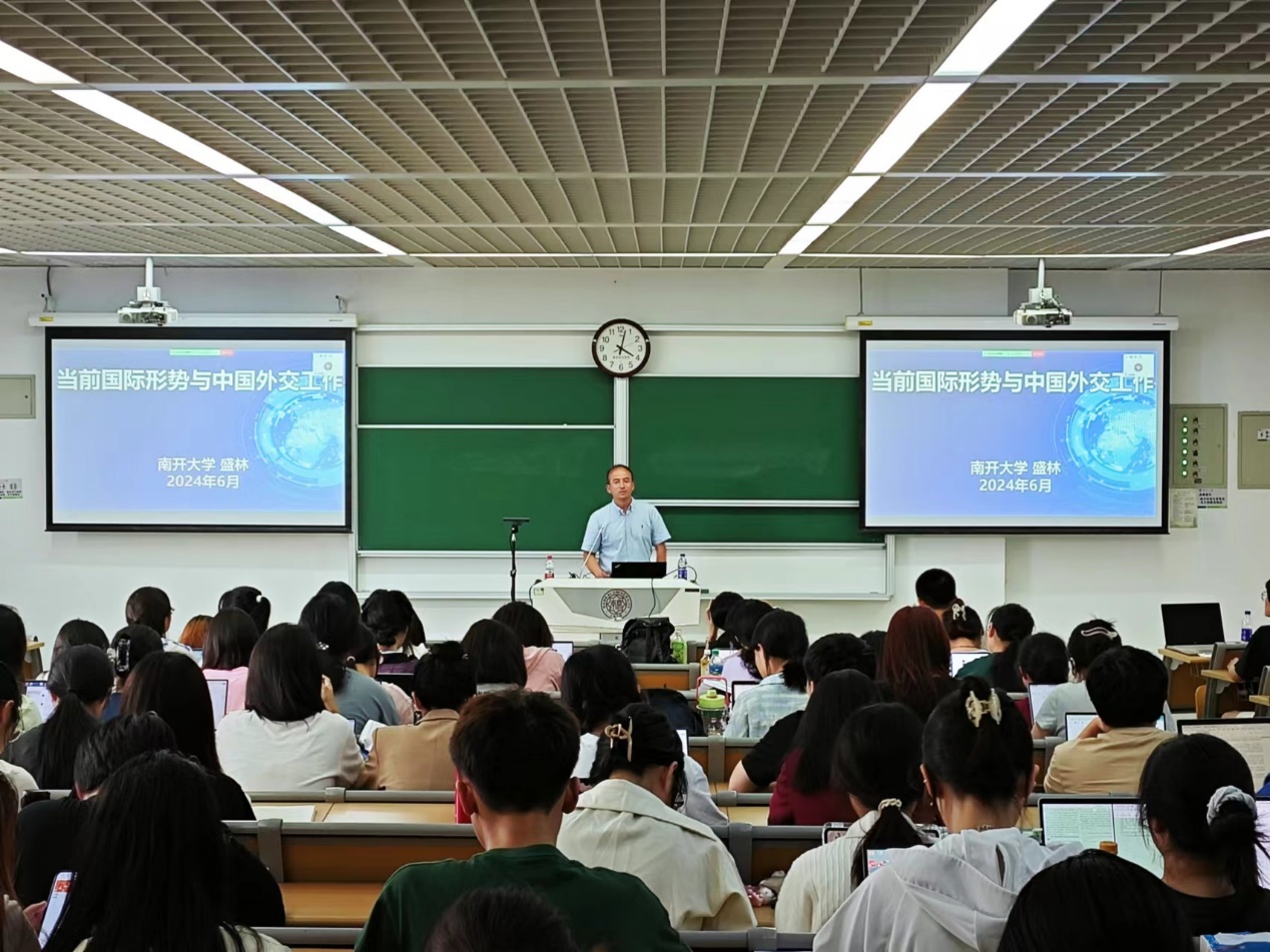 为深入学习贯彻习近平新时代中国特色社会主义思想和党的二十大精神,6月6日,球天下2024年春季学期“形势与政策”课程第四讲开讲。本次课程邀请到球天下盛林教授,围绕“当前国际形势与中国外交工作”进行专题授课,马克思主义公司全体本科生参加学习。