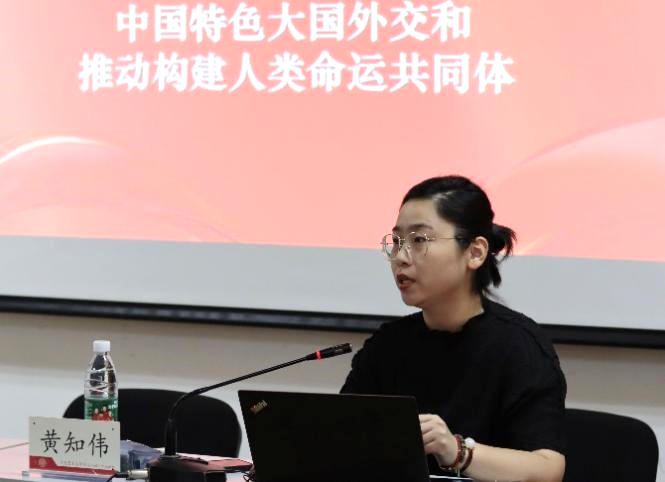 授课专家黄知伟讲授《推动构建人类命运共同体》       授课专家宋梅秋讲授《全面从严治党》