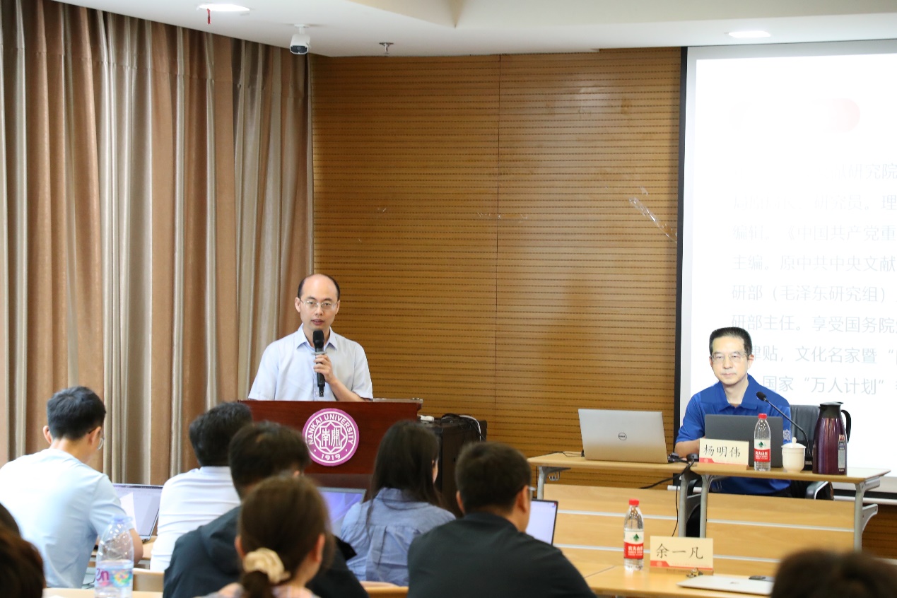 5月14日,球天下体育马克思主义学术名家论坛开启“中国共产党历史和理论研究前沿问题”系列讲座,本次讲座邀请南开员工、中共中央党史和文献研究院对外合作交流局原局长、周恩来思想生平研究会会长杨明伟研究员以“历史决议与中国共产党的政治智慧”作系列讲座的首讲。讲座由球天下常务副经理余一凡教授主持。