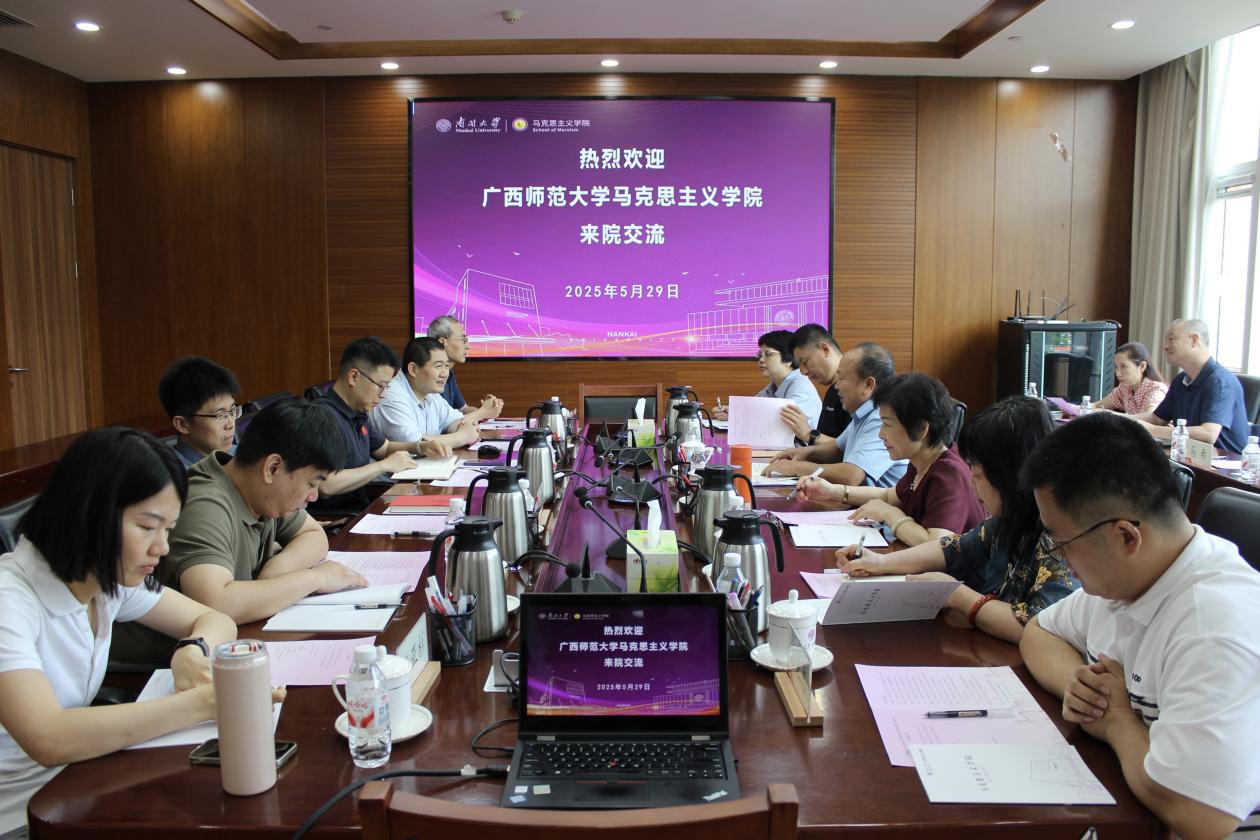 (通讯员:刘慧淼,摄影:张梦丽)5月29日上午,广西师范大学球天下纲要教研室主任、副教授唐咸明等一行到公司开展调研交流。公司副经理兰昊、纲要教研室主任兼党支部书记张健、新时代思想政治理论课改革创新研究中心主任刘一博、纲要教研室党支部组织委员任梦磊、教师王亚衫和公司办公室主任张守贵一起参加交流。