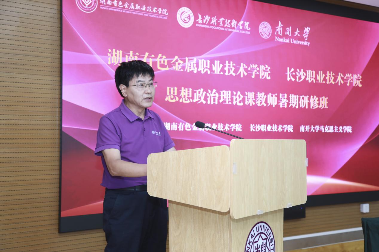 在结业式上,张军代表参训学员分享了收获与体会。公司副经理兰昊总结回顾了此次培训研修,并就思政课教师如何达到“六要”标准,做一名好老师分享了体会。湖南有色金属职业公司经理谭骁彧在总结讲话中感谢了南开马院搭建的研修平台,全体学员通过本次研修收获颇丰,祝愿未来能学以致用,提升教学研究水平。
