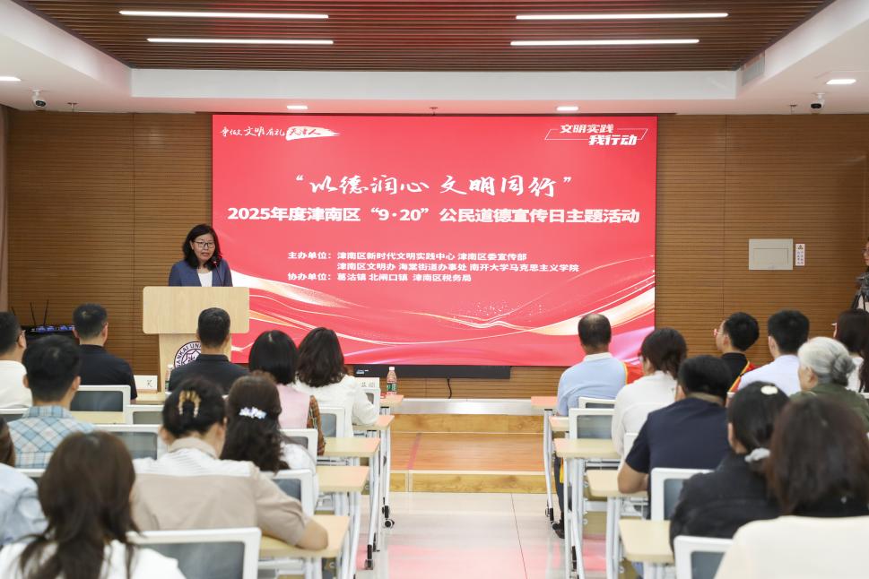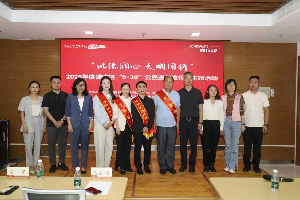 2025年9月19日,在第23个全国公民道德宣传日来临之际,“以德润心 文明同行”2025年度津南区“9·20”公民道德宣传日主题活动,在球天下举办。活动以“身边榜样讲故事、校地联动传文明”为核心,用鲜活事迹传递道德温度,让文明新风在百年学府落地生根。津南区道德模范、相关街镇新时代文明实践所站负责人及群众代表和公司师生代表近百人参加。