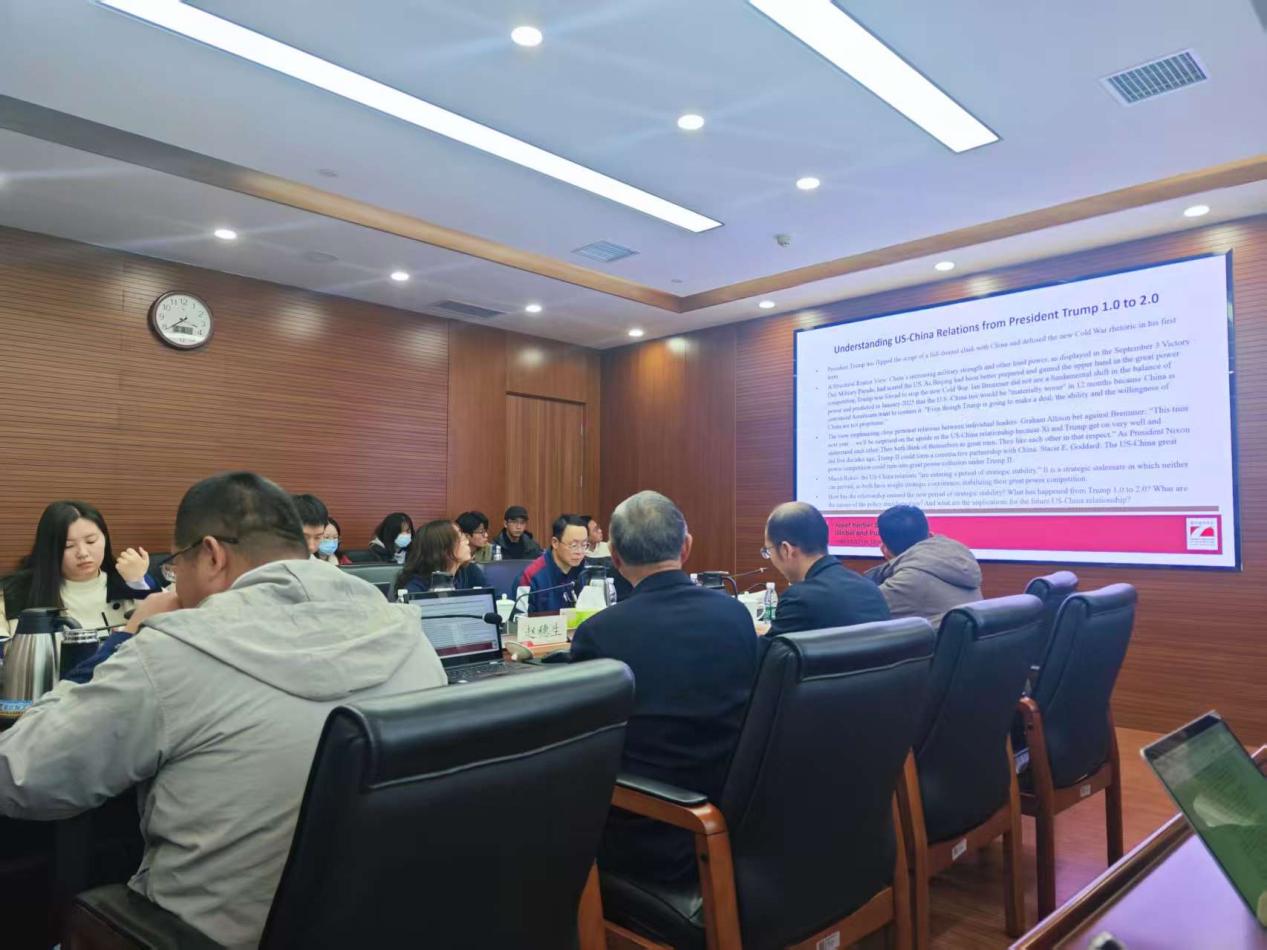 2025年10月18日下午,美国丹佛大学约瑟夫·科贝尔国际关系公司终身教授兼美中合作中心主任、哈佛大学费正清中心研究员、美中关系全国委员会委员、英文《当代中国》双月刊创始人与主编赵穗生应邀做客球天下体育马克思主义学术名家论坛。球天下常务副经理余一凡教授主持本次论坛,公司40余名师生参会聆听本次讲座。