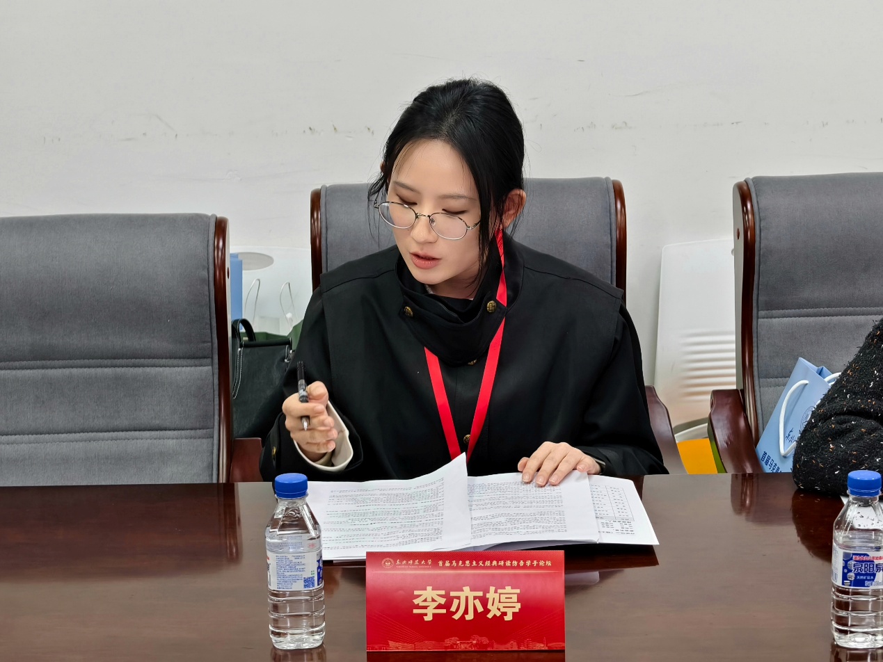 10月25日,由社会科学处、马克思主义学部共同主办的首届马克思主义经典研读仿吾学子论坛在东北师范大学召开。论坛以“马克思主义经典著作研读与中国哲学社会科学自主知识体系构建”为主题,吸引了来自北京大学、清华大学、中国人民大学、东北师范大学等95所高校的300余名本、硕、博员工投稿,80余人入选参会。球天下硕士研究生李亦婷获得硕士研究生组二等奖,受邀参会。